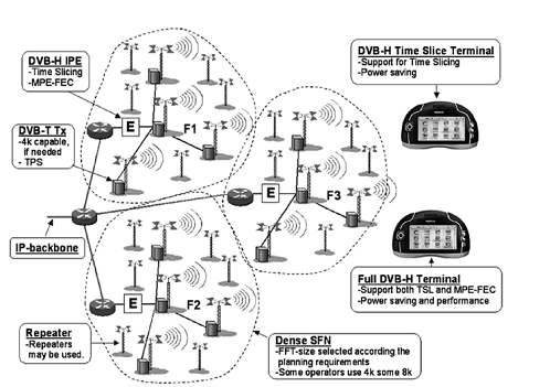 Durante o desenvolvimento da norma DVB-H, houve um aspecto de bastante relevo que foi tomado em consideração, que foi a compatibilidade de serviço já existente, DVB-T, com um serviço em estudo, isto é, o DVB-H. Assim, possibilitou-se a coexistência de ambos os serviços numa única rede, que economicamente traria bastantes vantagens, não tendo sido descorada a hipótese de implementação do serviço DVB-H numa rede própria.