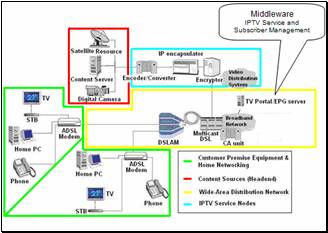 Figura 2 – Visão detalhada de uma arquitectura IPTV [3].