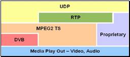 De realçar que a transmissão tanto pode ser feita por User Datagram Protocol (UDP), como por Real Time Protocol (RTP)/UDP. A desvantagem do UDP é que só por si não garante fiabilidade na transmissão, o que é resolvido usando o RTP.