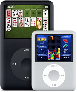 O iPod original vinha com um jogo criado pela Apple, o Brick. Nas versões seguintes foram incluídos os jogos Parachute, Solitaire e Music Quiz.
