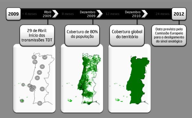 No dia 29 de Abril de 2009 deram-se oficialmente incio às emissões da TDT em Portugal com a instalação de 15 retransmissores cobrindo cerca de 40% do território nacional em 29 concelhos.