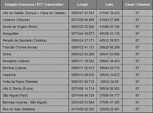 Figura 7. Lista de transmissores activos no 1º dia da TDT