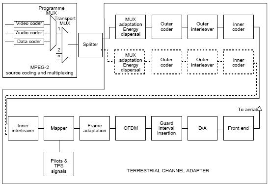 Splitter – Este módulo efectua a divisão de dois TS (transport streams) diferentes permitindo assim operar num modo hierarquico (onde se transmite dois sinais simultâneos com diferentes prioridades - "simulcast"). Permite, por exemplo, receber dependendo do nível de sinal-ruído a emissão em SDTV ou em HDTV.