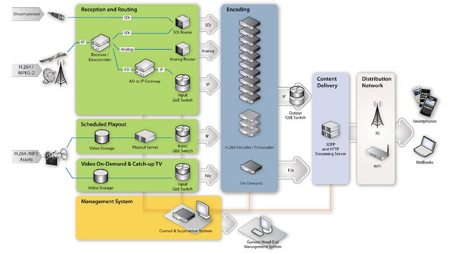 A informação é posteriormente armazenada nos servidores do operador, usualmente chamados de Head-End Offices, segundo a norma MPEG e através do “playout server” o conteúdo é encaminhado para o subsistema de “Encoding” da rede através da rede Ethernet do operador.