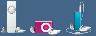 A terceira geração (terceira imagem da Figura 1) deste modelo lançada em Março de 2009, difere mais uma vez no design, sendo o mais pequeno de todos os iPod no mercado. |