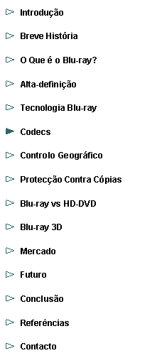 Os codecs especificados para o áudio e para o vídeo incluem codecs utilizados em formatos anteriores (DVD e CD). Todavia, alguns são usados pela primeira vez num formato óptico.