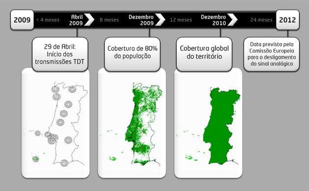 Entre 2009 e 2012 decorrerá um período de simultaneidade das transmissões analógicas e digitais em Portugal, tendo sido antecipado pela Portugal Telecom a cobertura total do país, em 12 meses, face ao prazo limite para o switch-off (desligar) das emissões analógicas definido pela Comissão Europeia .