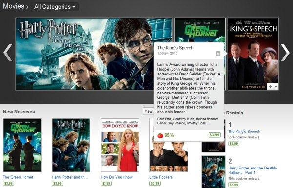 Foram também disponibilizados cerca de 3000 filmes para aluguer, a 9 de Maio, (para utilizadores dos Estados Unidos da América), após colaboração com a NBC Universal, Sony Pictures e Warner Bros, o que propulsionou o serviço para uma nova era. Publicaram-se também críticas aos filmes bem como "behind-the-scenes". |