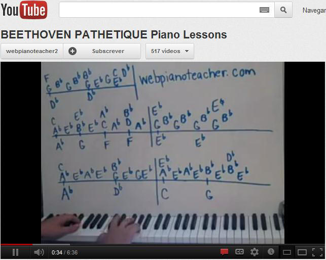 Apresenta-se em seguida um exemplo de material didáctico fornecido no YouTube. Um professor de piano criou um canal onde difunde as suas aulas. Usa posteriormente um site (fora do YouTube) onde as pessoas podem pagar para receber aulas extra. O YouTube tornar-se assim um veículo de acções publicitárias sem custos para estas pessoas.