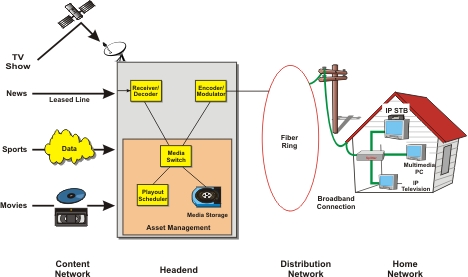 Esta sub-rede representa a extremidade principal de vídeo, é o ponto no qual se encontram os conteúdos provenientes dos prestadores de serviços. Sendo também conhecida como Head-end esta sub-rede consiste em varias componentes que podem variar de rede para rede, tais como, fonte de vídeo, codificador/descodificador, transcodificadores para adaptar o sinal as taxas de streaming, entre outros.