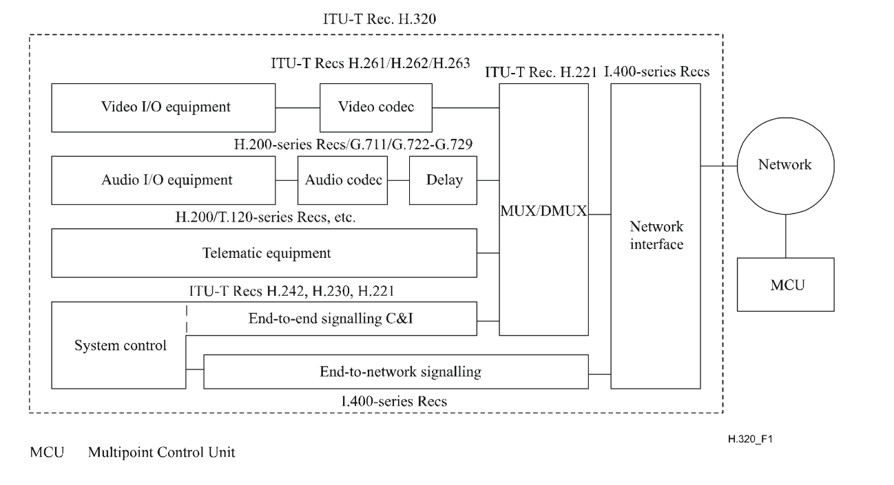 A recomendação H.320 faz referência às possíveis recomendações técnicas que definem em particular cada elemento do sistema.