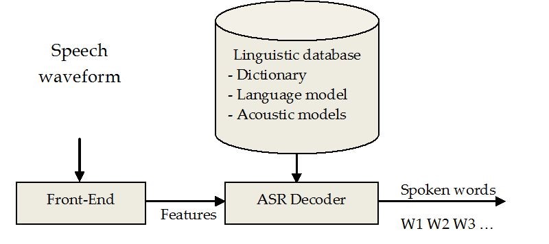 O ASR começa por criar um sinal temporal correspondente à voz com os sons externos a ela. Depois de se ter o sinal de voz, este é convertido numa sequência de vectores [w1,w2,…wn] (vector por palavra) que são medidos durante a duração do sinal. Após isto, é usado um descodificador sintático que tenta fazer corresponder cada vector a uma palavra correspondente dum dicionário originando o novo vector de palavras [W1, W2,….Wn]. Com isto, o descodificador consegue criar uma estimativa do texto lido.