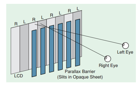 No caso da barreira de paralaxe, coloca-se uma barreira opaca em frente de um ecrã LCD normal, composta por fendas igualmente espaçadas, tal como demonstra a Figura 11.