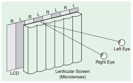Figura 12 - Representação de um ecrã equipado com lentes lenticulares [9].