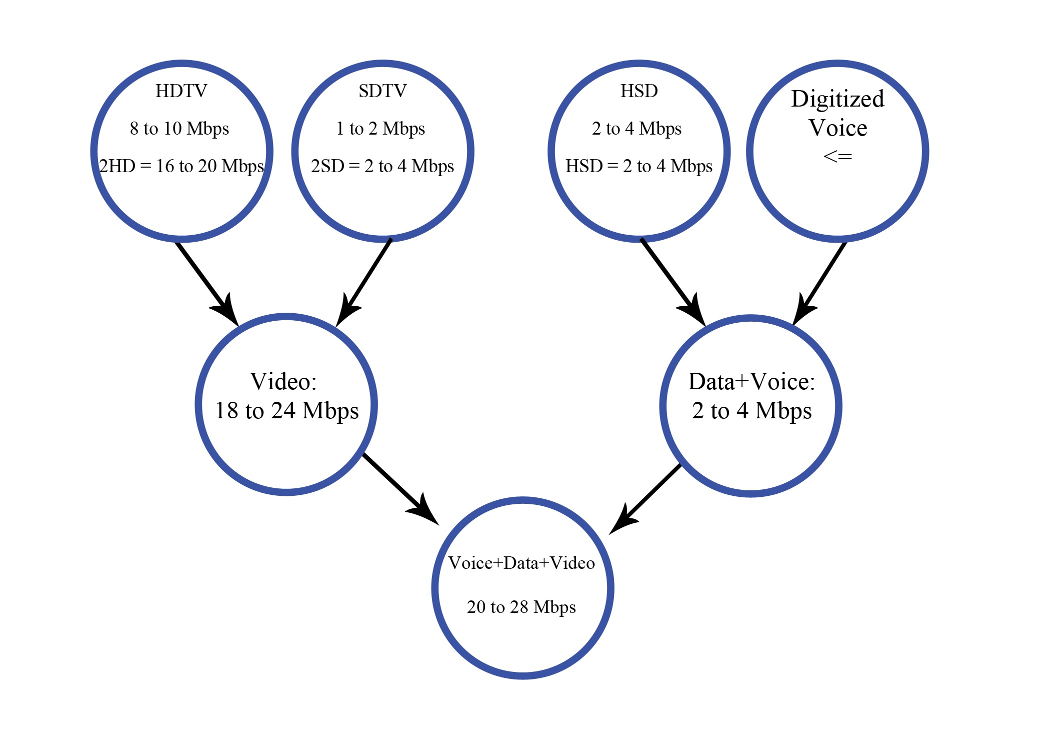 é necessário que a rede suporte um determinado bitrate, que pode variar