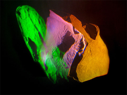 O holograma difracta a luz numa imagem. Como descrito anteriormente, a transmissão e reflexão hologramas variam neste aspecto: Enquanto que o holograma de reflexão reconstrói apenas comprimentos de onda (cores) seleccionados, o holograma de transmissão difracta todos os comprimentos de onda da luz com que é iluminado. O holograma não altera o comprimento de onda (cores) da luz, mas controla onde os diferentes comprimentos de onda são difractados. As várias cores de uma imagem holográfica são então produzidas selecionando e combinando as cores espectrais difractadas. Com um holograma de reflexão, através da manipulação do processamento químico, a estrutura holográfica pode ser expandida ou reduzida alterando a cor da imagem reconstruída. Hologramas de reflexão de “Pseudo-cor” podem ser criados através de várias exposições, entre as quais a emulsão é inchada ou encolhida para mudar o espaçamento registrado e, portanto, de cor, uma técnica que tem sido amplamente utilizada por John Kaufman e Iñaki Beguiristain. Hologramas de transmissão no entanto tem um uma qualidade visual diferente e a cor é controlada pela geometria, em vez de química. Quando iluminado com uma fonte de luz branca, o holograma de transmissão vai difractar todos os comprimentos de onda de luz na imagem. No entanto, como os comprimentos de onda vermelhos são mais longos, eles são mais deflectidos que os comprimentos de onda azul , logo a imagem terá manchas de cor - a luz multi-espectro espalha-se numa imagem de arco-íris[4].