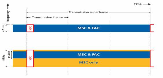 Como a taxa de bits é muito limitada, é importante existir um compromisso entre flexibilidade e eficiência protegendo cada bit de informação. É feita uma distinção entre os vários tipos de data, dando assim mais protecção a uns bits que outros. Existem três tipos de serviços na DRM, o MSC (Main Service Channel), o SDC (Service Description Channel) e o FAC (Fast Access Channel).